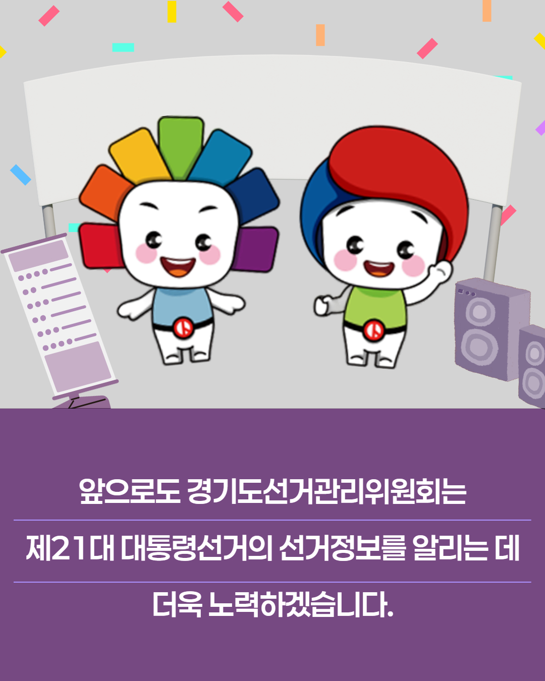 앞으로도 경기도선거관리위원회는 제21대 대통령선거의 선거정보를 알리는 데